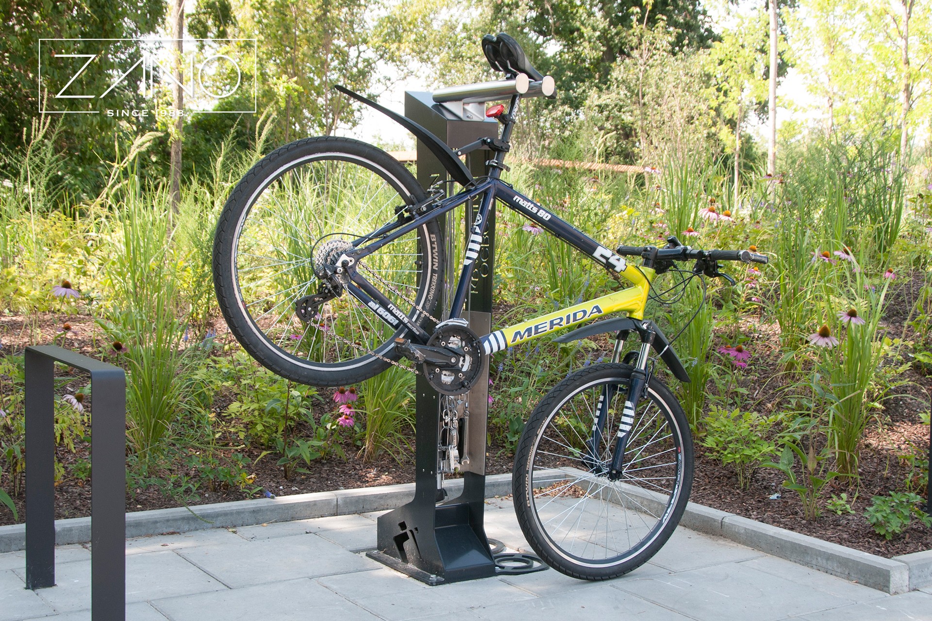 Versione della stazione di riparazione con supporto aggiuntivo per biciclette.